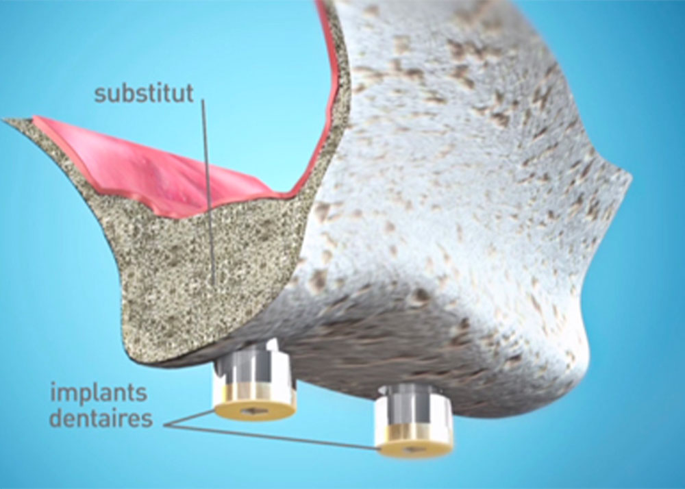 Dans la majorité des cas il est nécessaire de combler et d’augmenter le volume osseux de cet espace par un substitut, afin de permettre un encrage solide et pérenne des implants dentaires.