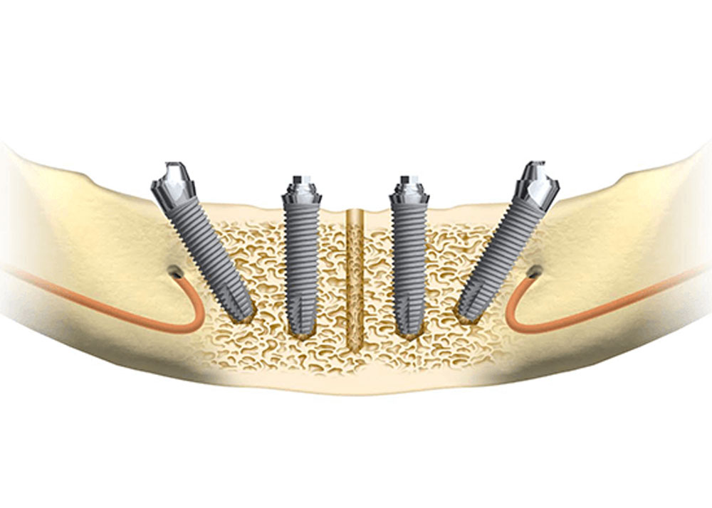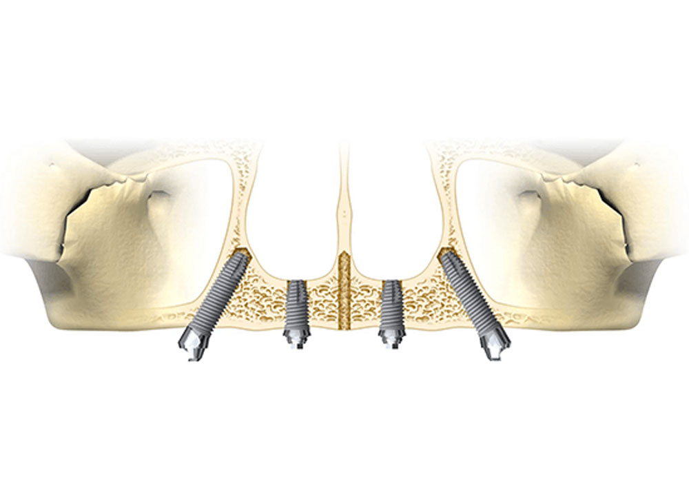 - Le All-on-4/All-on-6 concerne tous les patients en éliminant le recours aux greffes osseuses (sinus-lift, greffe d’apposition) qui sont invasives, coûteuses parfois inconfortable.